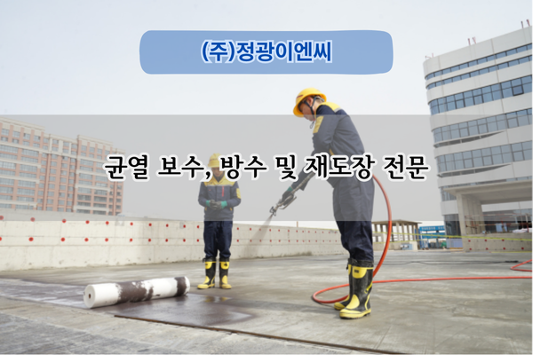 (주)정광이엔씨는 건물 외벽 균열 보수, 재도장 및 옥상 방수 공사를 전문으로 합니다. 신속하고 정확한 시공으로 건물의 안전과 미관을 보장합니다.