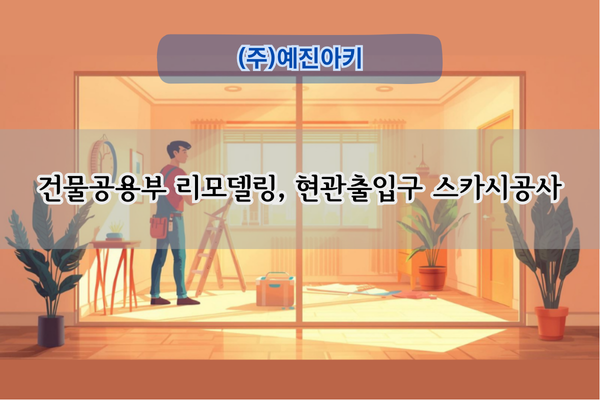 (주)예진아키는 현관출입구 스카시 공사를 전문으로 하는 업체입니다. 고품질 자재와 세련된 디자인으로 현관출입구를 개선하여 미관과 기능성을 동시에 제공합니다. 현관출입구 공사, 스카시 공사, 시설개선이 필요하신 분들께 최적의 솔루션을 제공합니다.