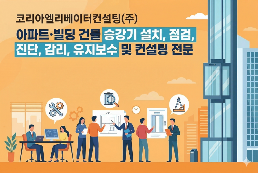 코리아엘리베이터컨설팅(주)는 아파트·오피스텔·상업빌딩 등 집합건물 승강기 설계, 검사, 설치, 유지보수 및 점검, 정밀진단, 감리 컨설팅을 제공합니다.