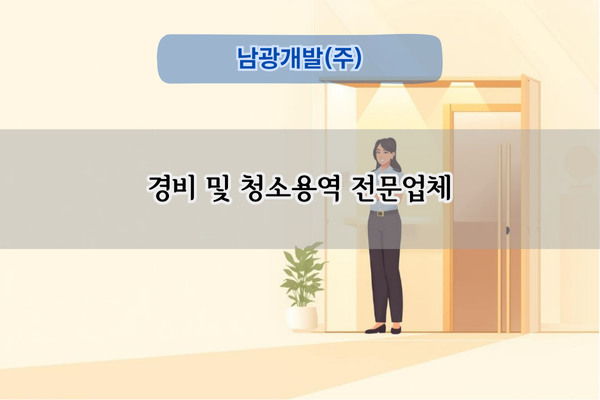 남광개발(주)는 경비와 청소용역을 전문으로 합니다. 철저한 관리와 효율적인 서비스로 안전하고 깨끗한 환경을 제공합니다. 경비용역, 청소용역, 보안 서비스, 청소 및 경비 업체 등의 역할을 수행하고 서비스를 제공합니다.